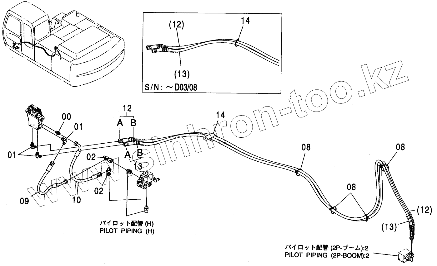 Каталог запасных частей к технике: Hitachi ZX-230. PILOT PIPING (2P-B00M)