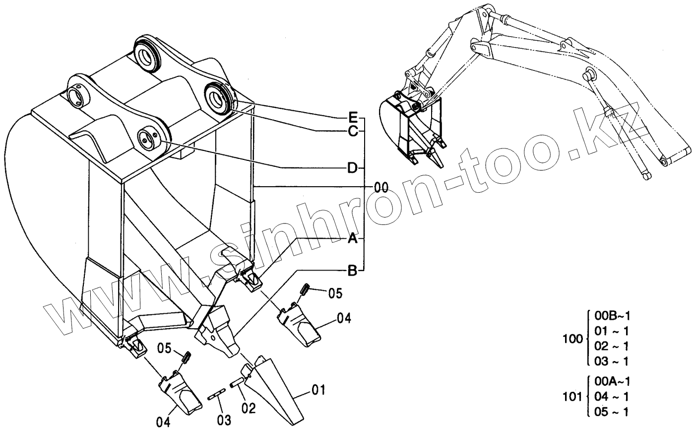 Каталог запасных частей к технике: Hitachi ZX-230. RIPPER BUCKET 0.8 (JIS 94)