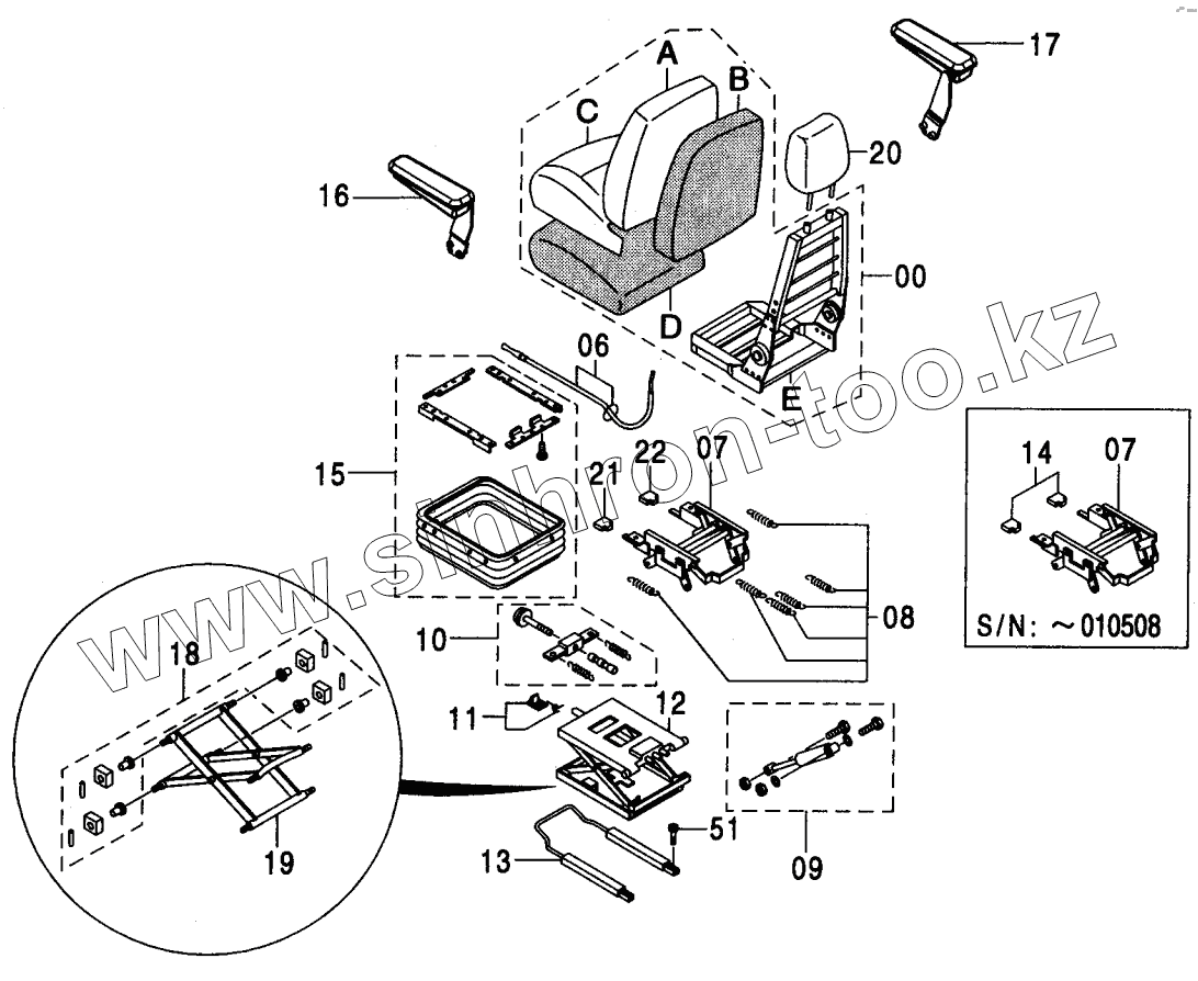Каталог запасных частей к технике: Hitachi ZX-230. SUSPENSION SEAT (VINYL)