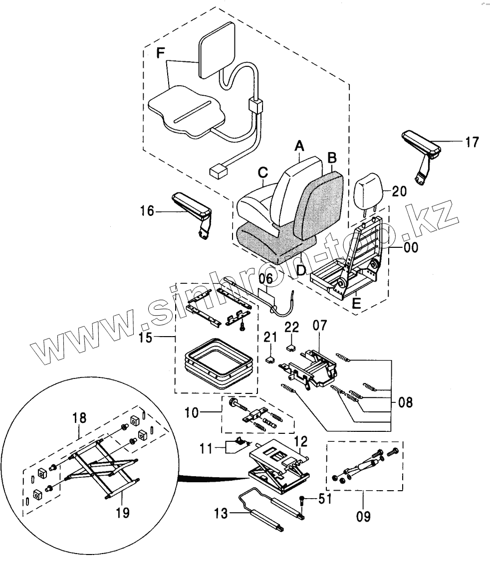 Каталог запасных частей к технике: Hitachi ZX-230. SUSPENSION SEAT (WITH HEATER)<250>