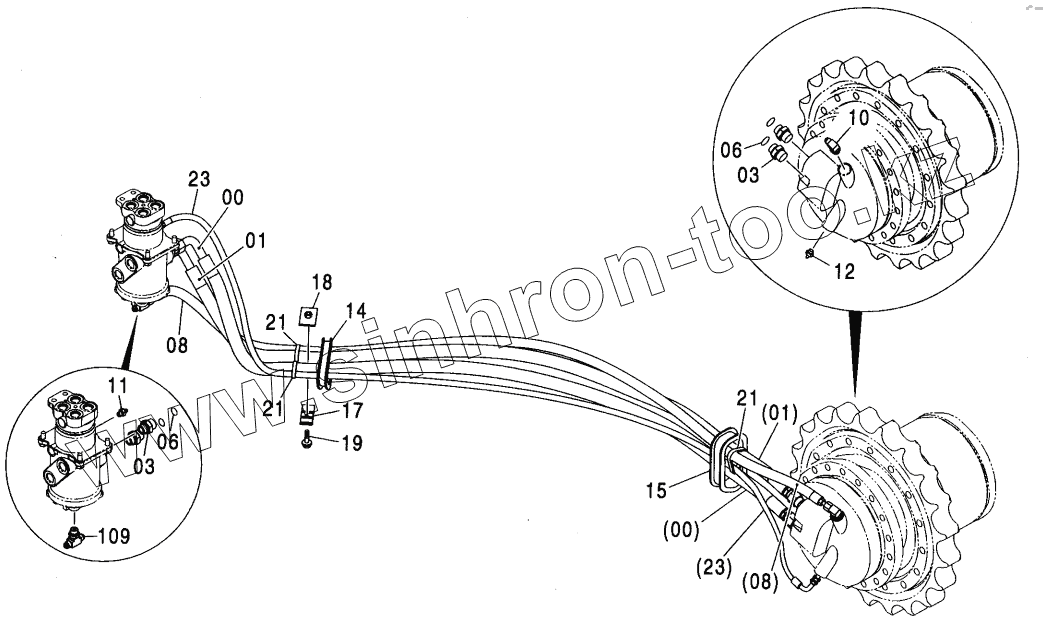 Каталог запасных частей к технике: Hitachi ZX-230. TRAVEL PIPING (LC TRACK)<TRAVEL HEAT>