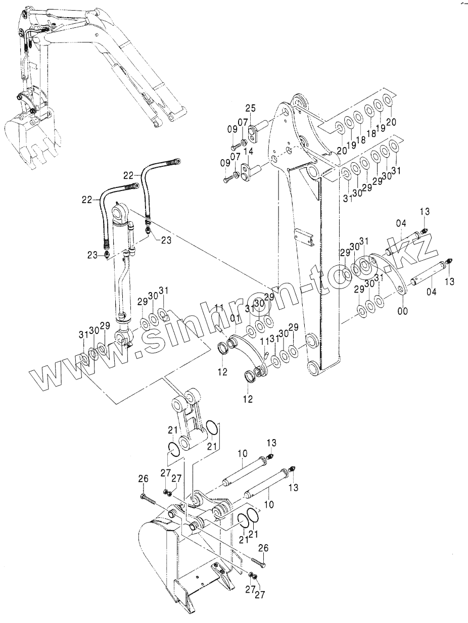 Каталог запасных частей к технике: Hitachi ZX-25. ARM PARTS (ARM 1.11M)