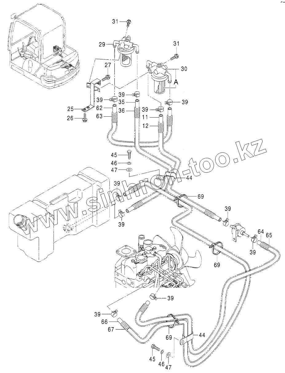 Каталог запасных частей к технике: Hitachi ZX-25. FUEL PIPING