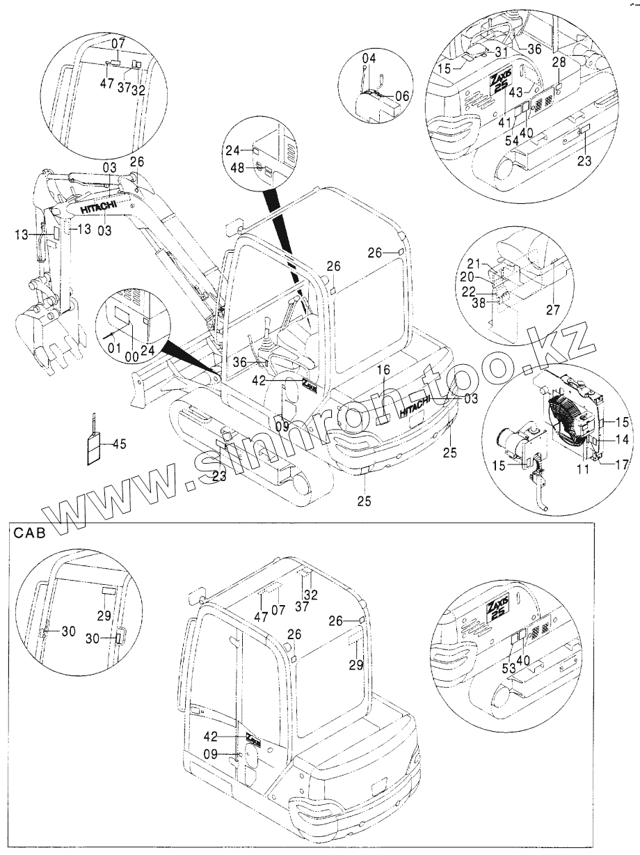 Каталог запасных частей к технике: Hitachi ZX-25. NAME-PLATE (ENGLISH)