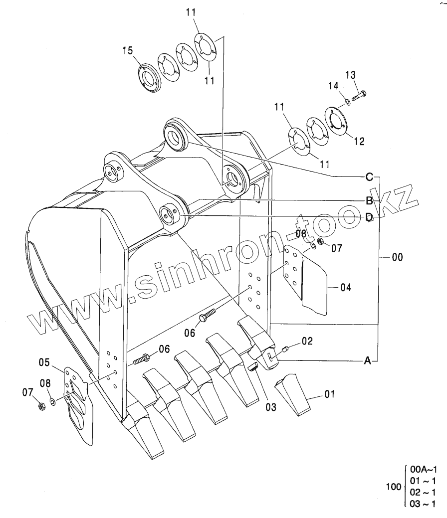 Каталог запасных частей к технике: Hitachi ZX-270. BUCKET 1.1 JIS 94