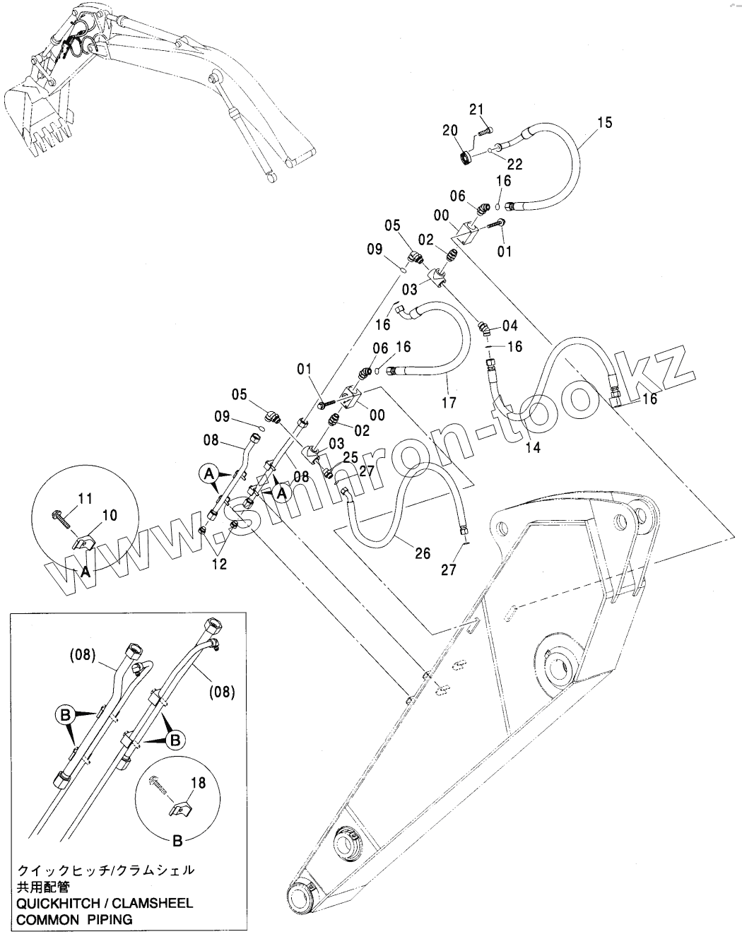 Каталог запасных частей к технике: Hitachi ZX-270. CLAMSHELL PIPING (2. 4M ARM)<280>