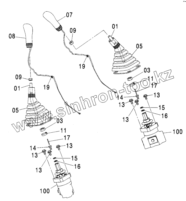 Каталог запасных частей к технике: Hitachi ZX-270. CONTROL LEVER (FRONT, SWING)