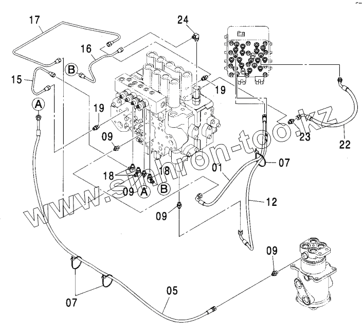Каталог запасных частей к технике: Hitachi ZX-270. PILOT PIPING (C-1)