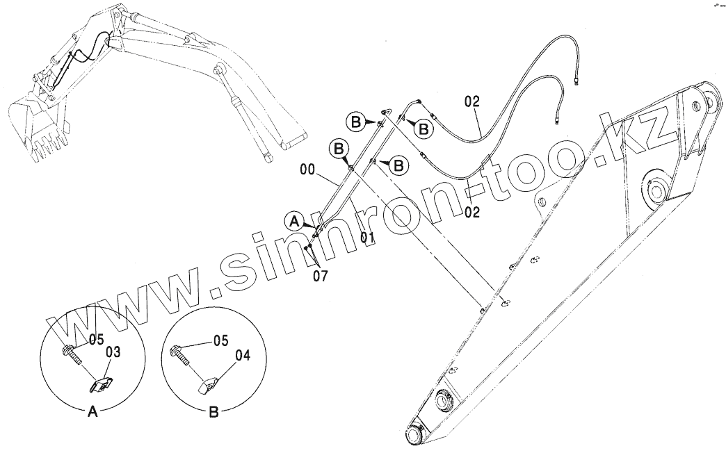 Каталог запасных частей к технике: Hitachi ZX-270. QUICKHITCH PIPING (3.75M ARM)<280>
