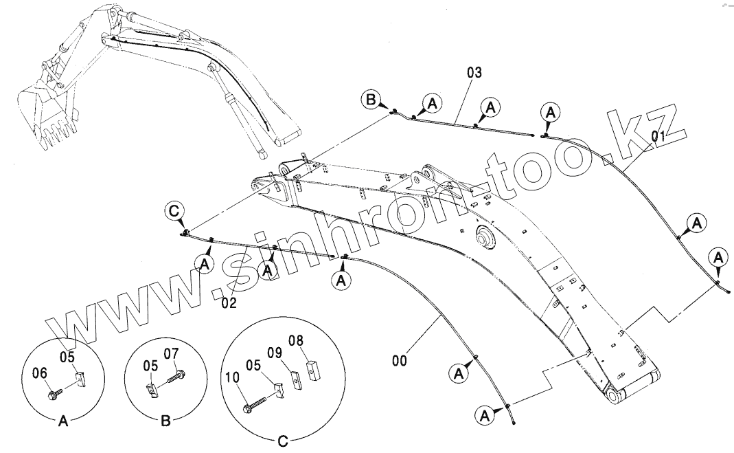 Каталог запасных частей к технике: Hitachi ZX-270. QUICKHITCH PIPING MONO BOOM<280>