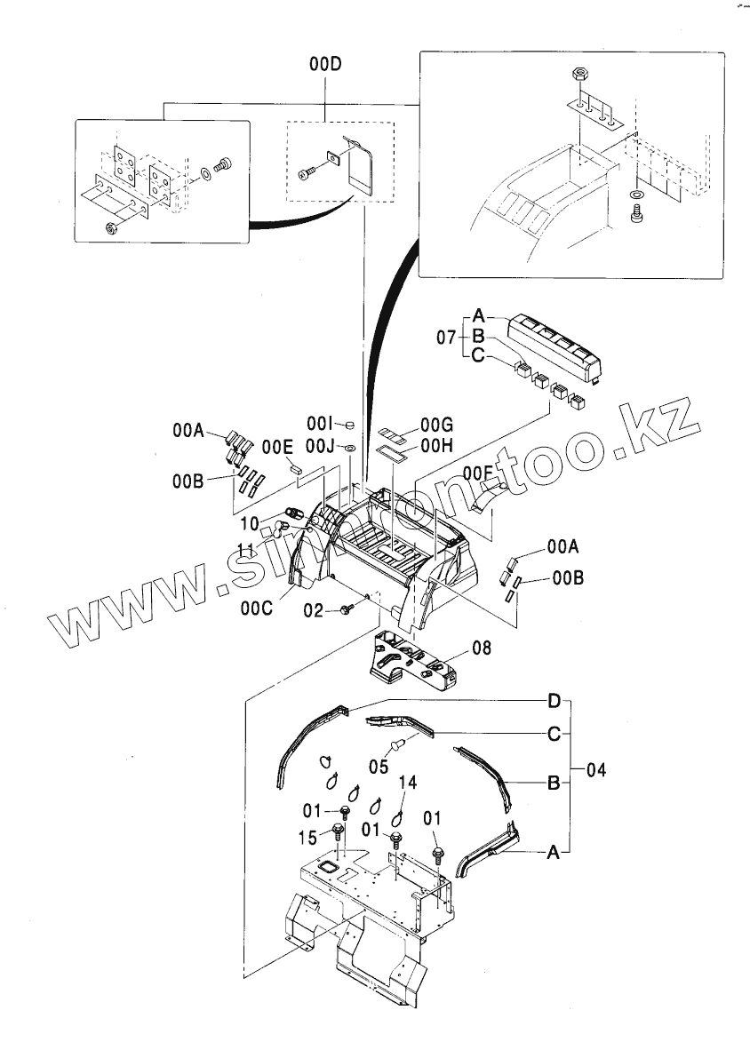 Каталог запасных частей к технике: Hitachi ZX-270. REAR BOX (12V POWER SUPPLY)