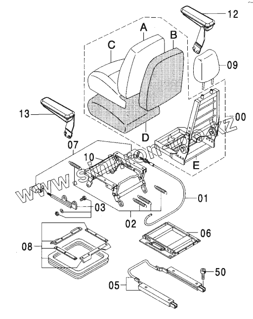 Каталог запасных частей к технике: Hitachi ZX-270. SEAT (VINYL) STD