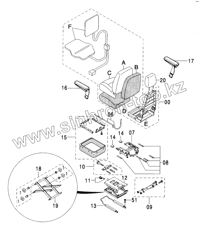 Каталог запасных частей к технике: Hitachi ZX-270. SUSPENSION SEAT (WITH HEATER) <280>