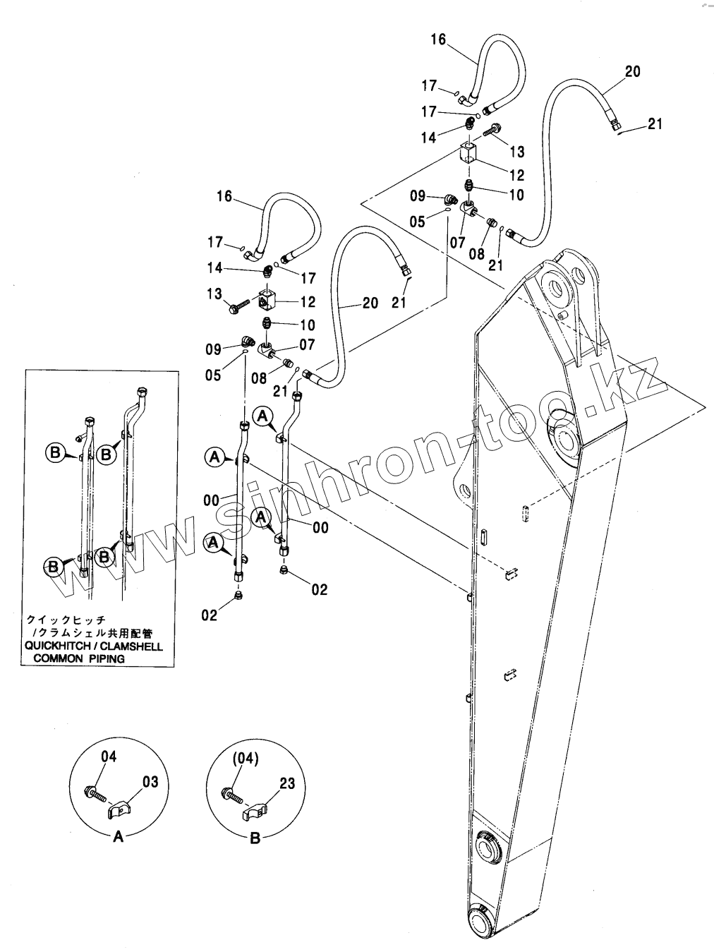 Каталог запасных частей к технике: Hitachi ZX-330. CLAMSHELL PIPING (4.00M ARM) <350>