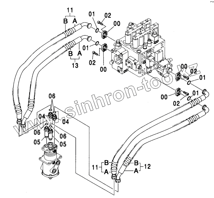 Каталог запасных частей к технике: Hitachi ZX-330. MAIN PIPING (4)