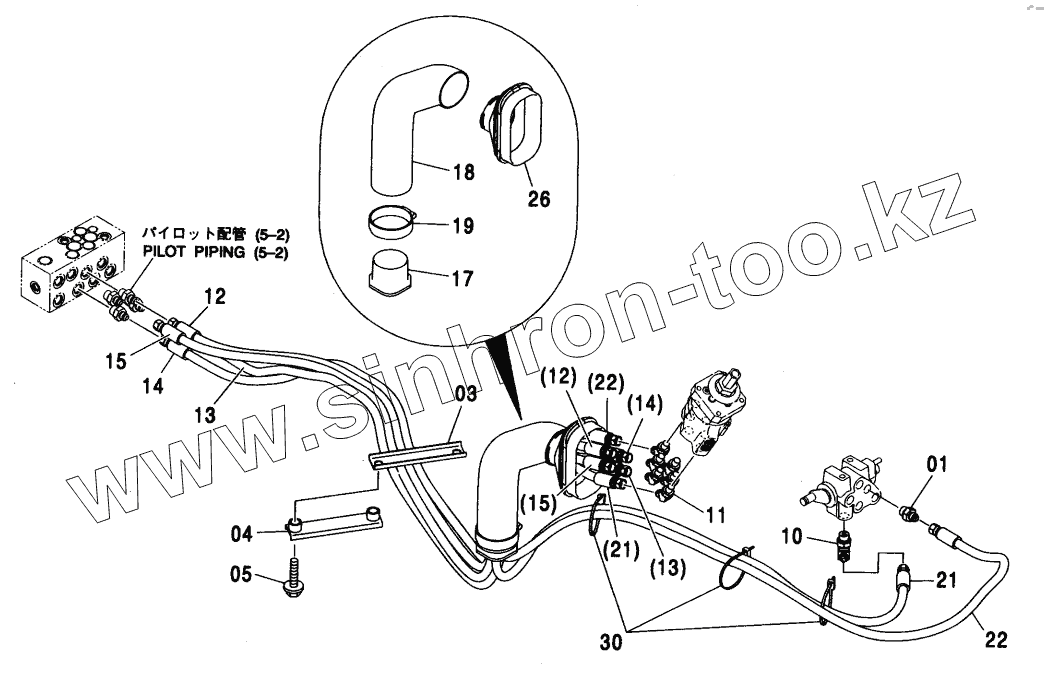 Каталог запасных частей к технике: Hitachi ZX-330. PILOT PIPING (9)