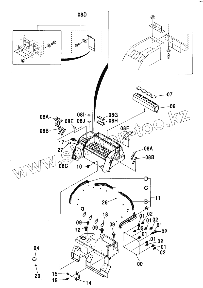 Каталог запасных частей к технике: Hitachi ZX-330. REAR BOX (HEATER LESS)