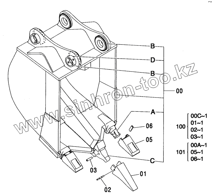 Каталог запасных частей к технике: Hitachi ZX-330. RIPPER BUCKET 0.9 (JIS 94)