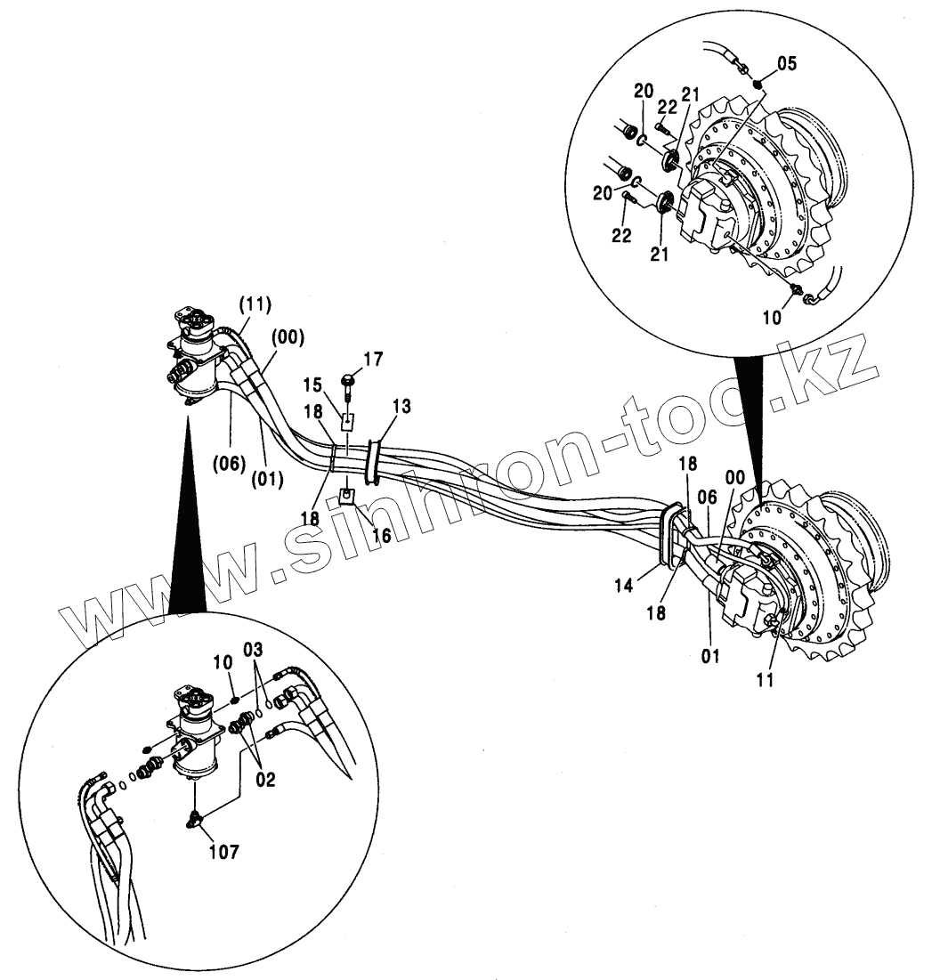 Каталог запасных частей к технике: Hitachi ZX-330. TRAVEL PIPING (MTH TRACK)