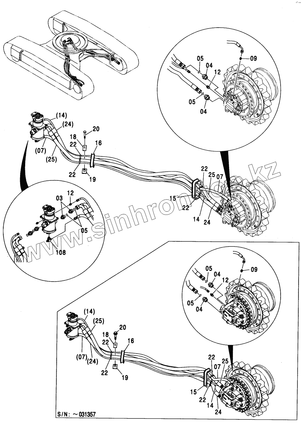 Каталог запасных частей к технике: Hitachi ZX-330. TRAVEL PIPING (STD. TRACK)
