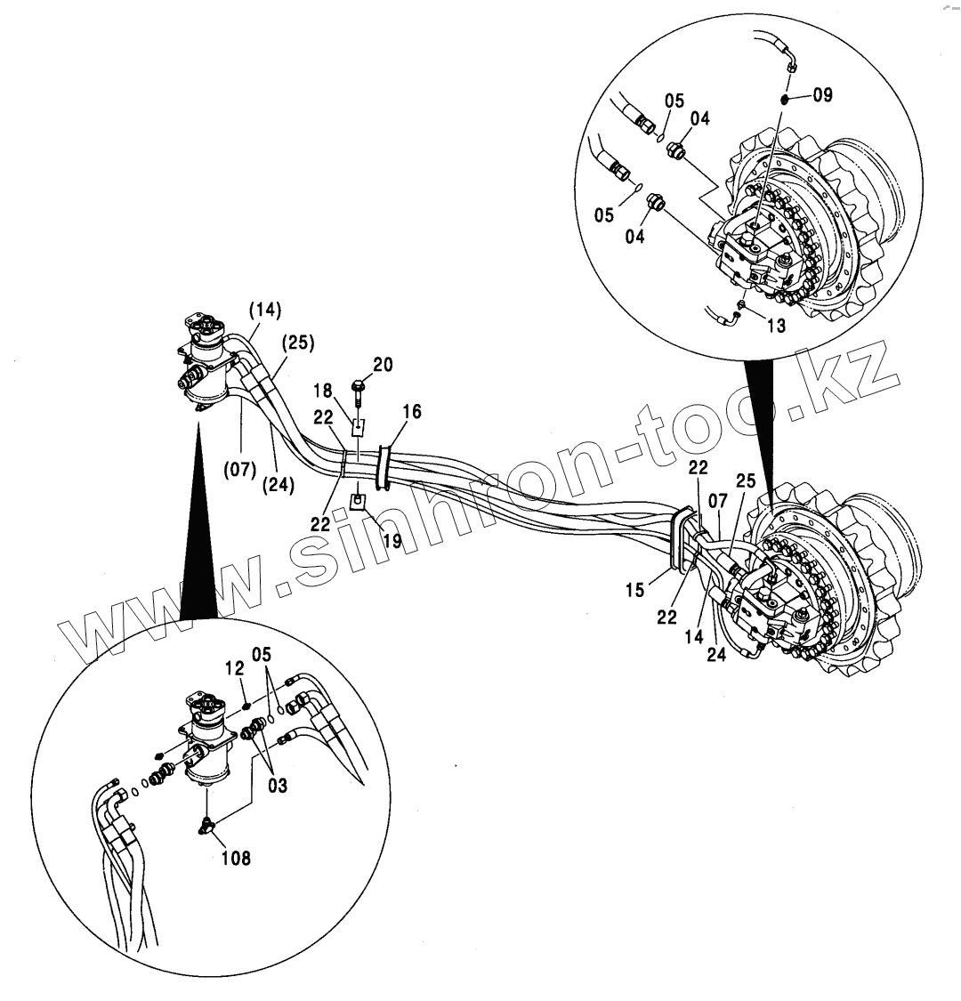 Каталог запасных частей к технике: Hitachi ZX-330. TRAVEL PIPING (STD. TRACK) <TRAVEL HEAD>
