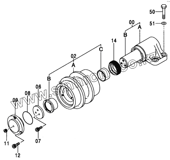 Каталог запасных частей к технике: Hitachi ZX-330. UPPER ROLLER <370,MTH,MTH(EU3)>