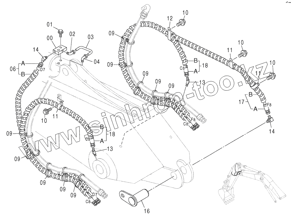 Каталог запасных частей к технике: Hitachi ZX-330-3G. AUTO. LUBRICATE PIPING (ARM)