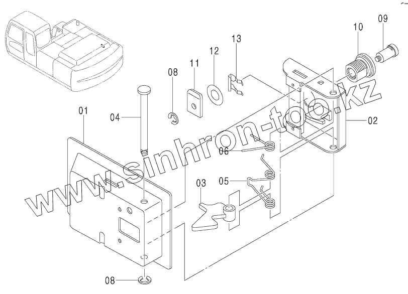 Каталог запасных частей к технике: Hitachi ZX-330-3G. DOOR LOCK (1)