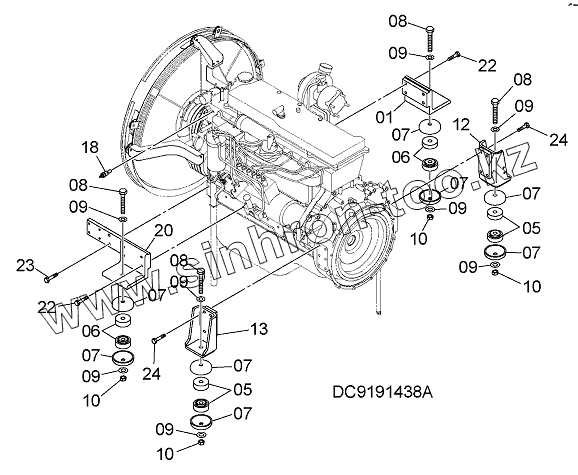 Каталог запасных частей к технике: Hitachi ZX-330-3G. ENGINE SUPPORT