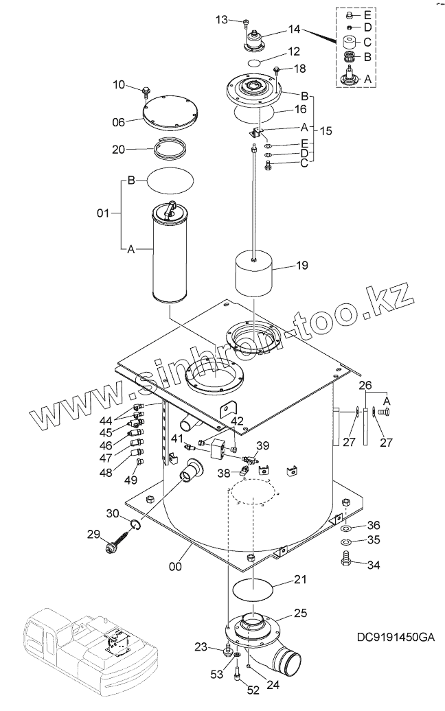 Каталог запасных частей к технике: Hitachi ZX-330-3G. OIL TANK Model: 330, H