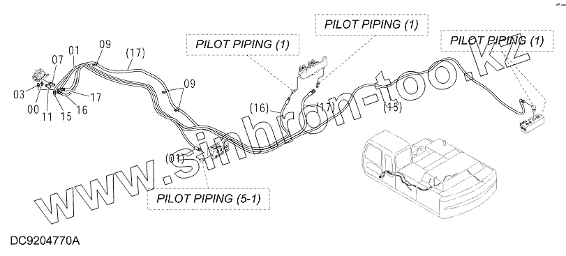 Каталог запасных частей к технике: Hitachi ZX-330-3G. PILOT PIPING (11)