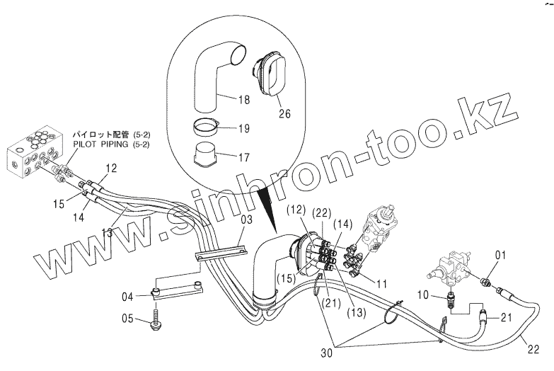 Каталог запасных частей к технике: Hitachi ZX-330-3G. PILOT PIPING (9)