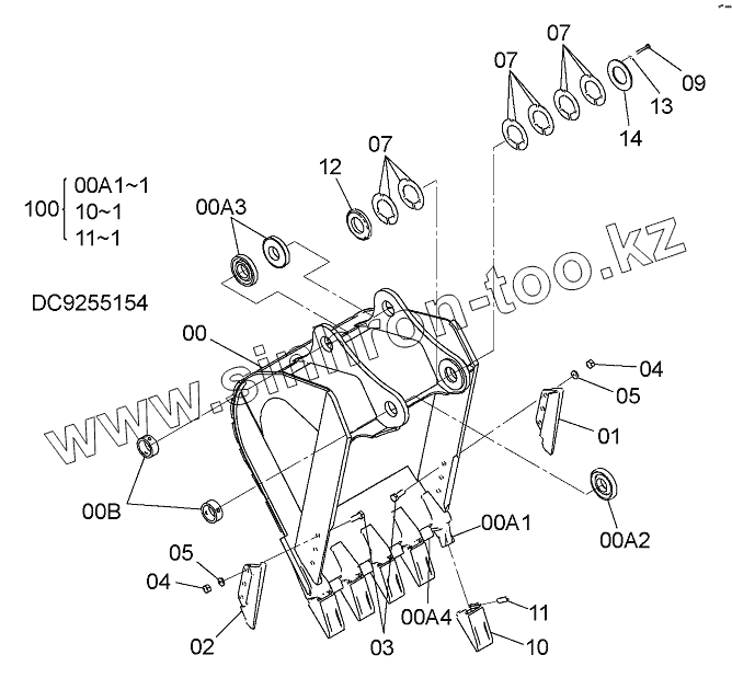 Каталог запасных частей к технике: Hitachi ZX-330-3G. ROCK BUCKET 1.15m3 (JIS 94)