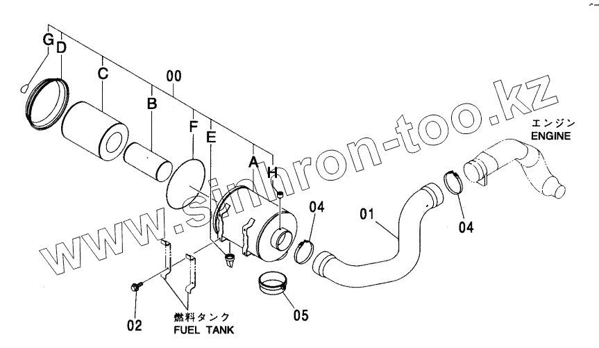 Каталог запасных частей к технике: Hitachi ZX-450. AIR CLEANER <450, H, MT, MTH>