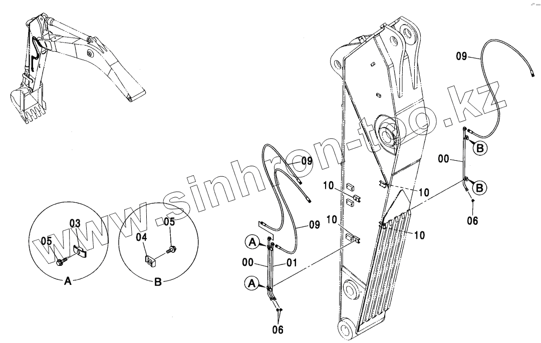 Каталог запасных частей к технике: Hitachi ZX-450. ASSIST PIPING (BE ARM)