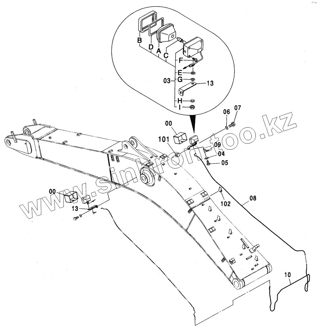 Каталог запасных частей к технике: Hitachi ZX-450. BOOM LIGHT (R) (WITH LIGHT COVER) <460>