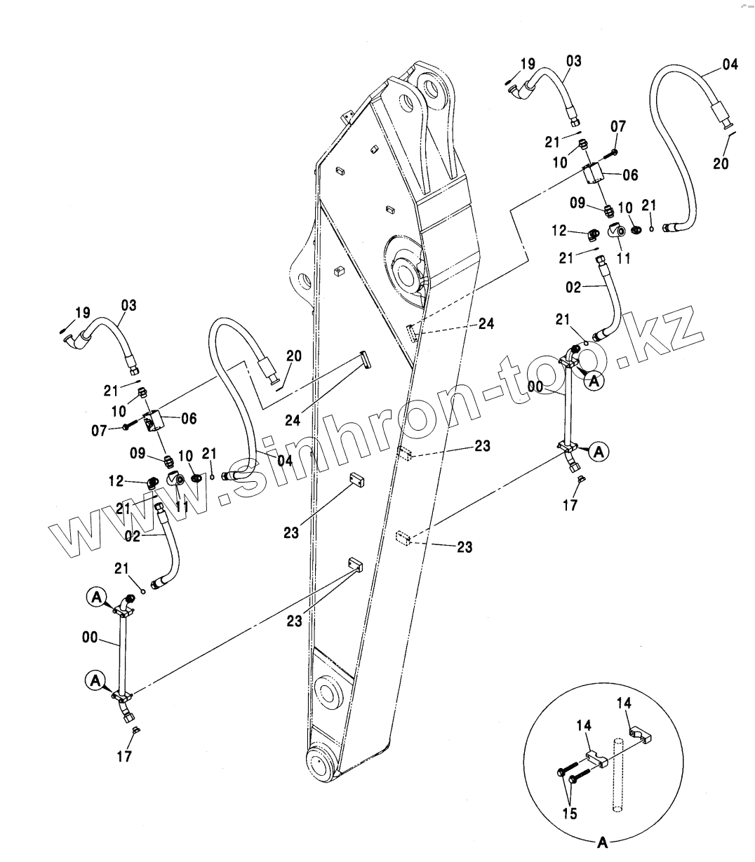 Каталог запасных частей к технике: Hitachi ZX-450. CLAMSHELL PIPING (SEMI-LONG ARM)