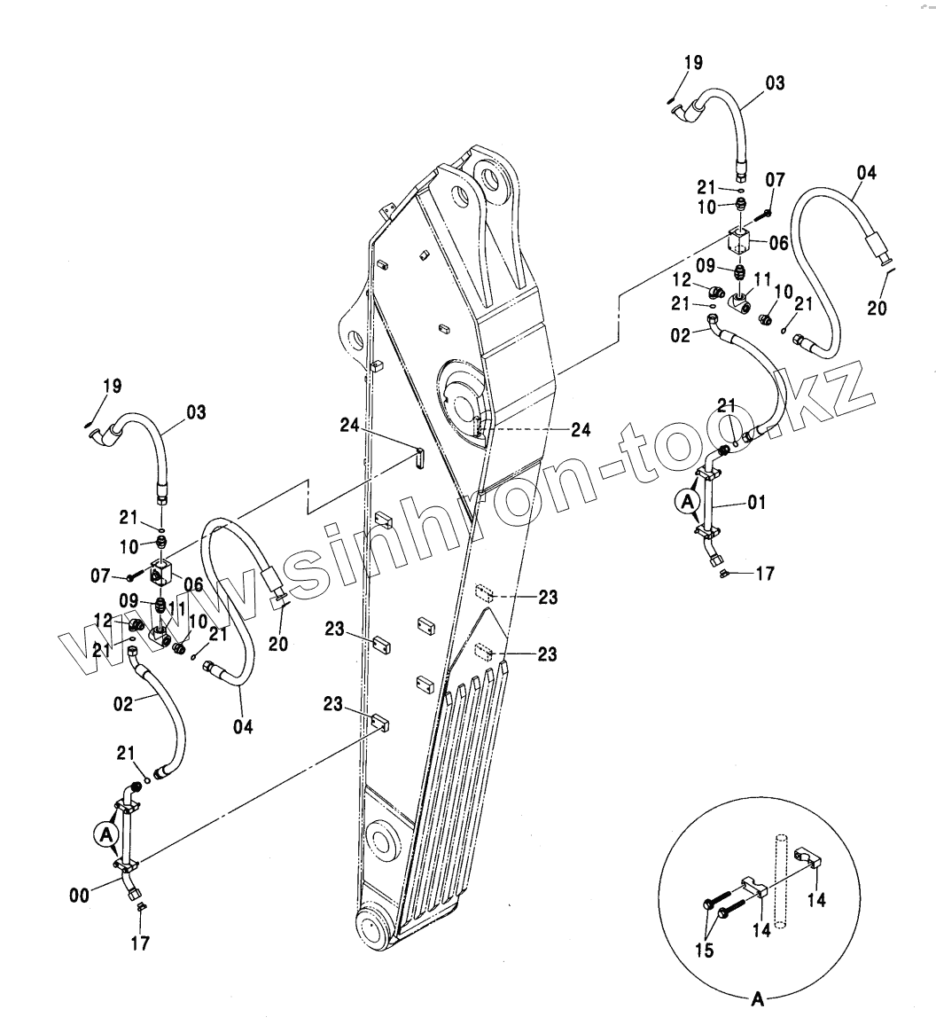 Каталог запасных частей к технике: Hitachi ZX-450. CLAMSHELL PIPING (STD. ARM, H ARM)
