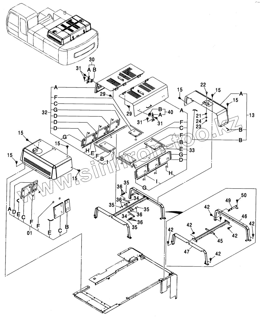 Каталог запасных частей к технике: Hitachi ZX-450. ENGINE COVER <460>