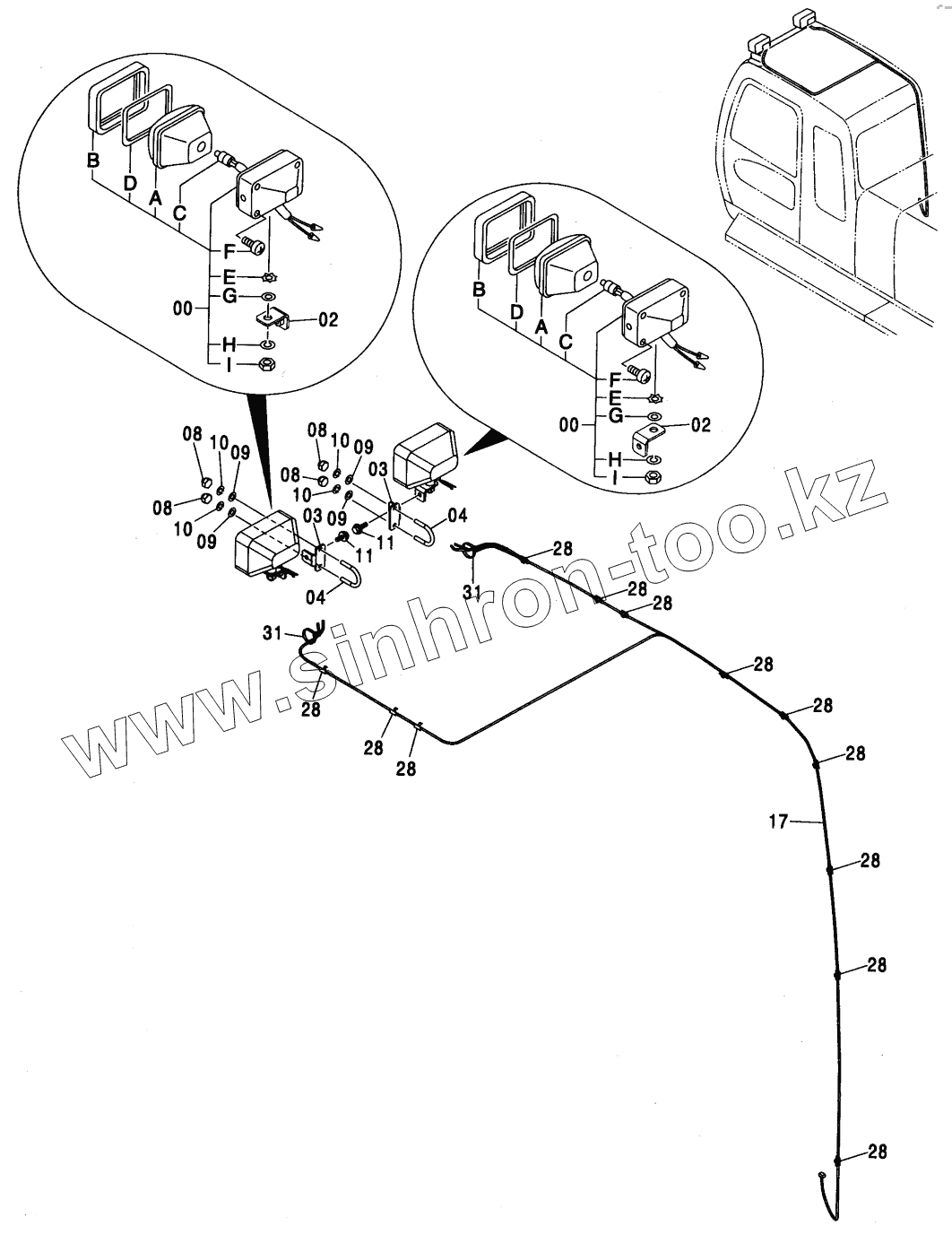 Каталог запасных частей к технике: Hitachi ZX-450. HEAD LAMP <450>