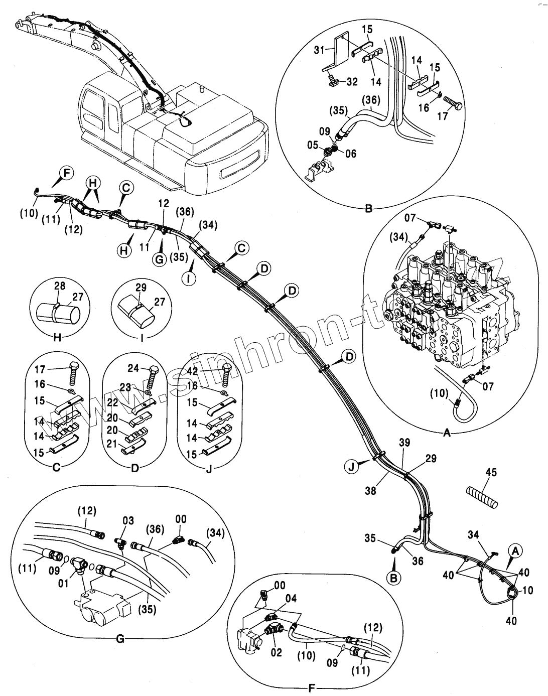 Каталог запасных частей к технике: Hitachi ZX-450. HOSE RUPTURE VALVE PIPING (ARM): 2