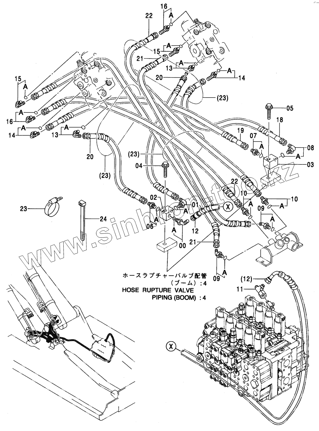 Каталог запасных частей к технике: Hitachi ZX-450. HOSE RUPTURE VALVE PIPING (BOOM): 3