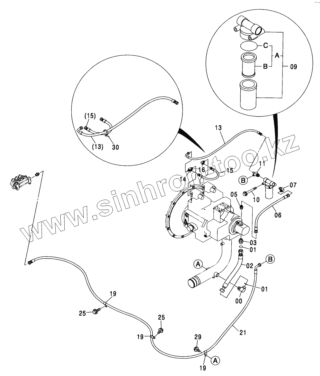 Каталог запасных частей к технике: Hitachi ZX-450. PILOT PIPING (1)