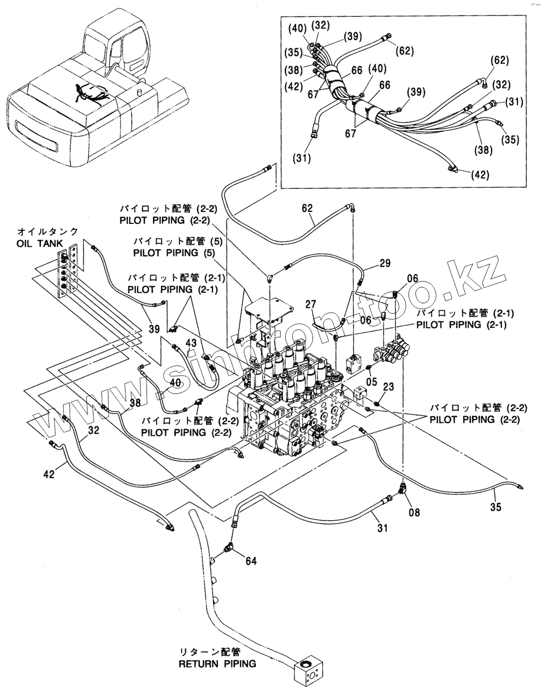 Каталог запасных частей к технике: Hitachi ZX-450. PILOT PIPING (4-1) <460>