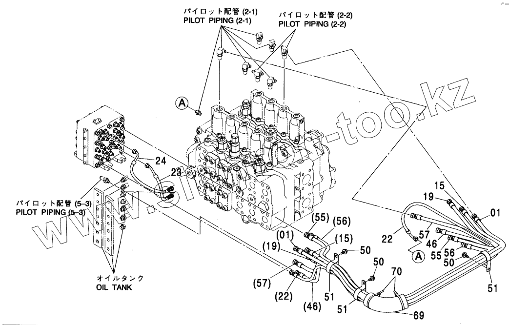 Каталог запасных частей к технике: Hitachi ZX-450. PILOT PIPING (5-1)