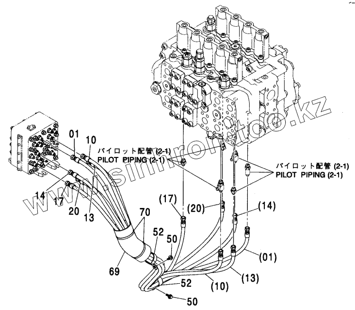 Каталог запасных частей к технике: Hitachi ZX-450. PILOT PIPING (5-2)
