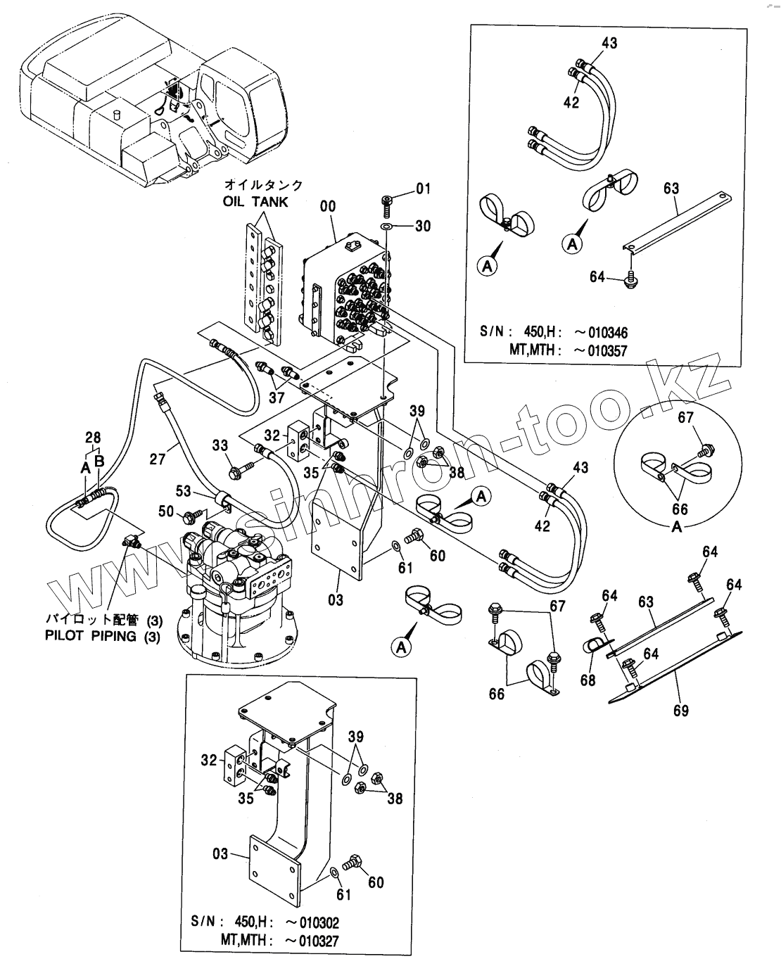 Каталог запасных частей к технике: Hitachi ZX-450. PILOT PIPING (5-3)
