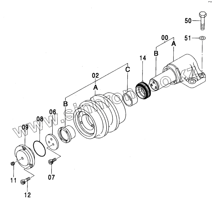 Каталог запасных частей к технике: Hitachi ZX-450. UPPER ROLLER (STD. TRACK)