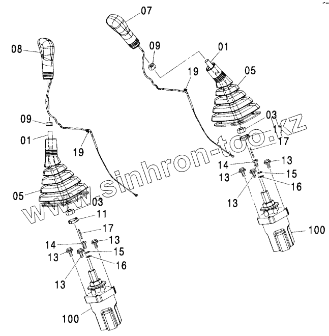 Каталог запасных частей к технике: Hitachi ZX-600. CONTROL LEVER (FRONT & SWING)