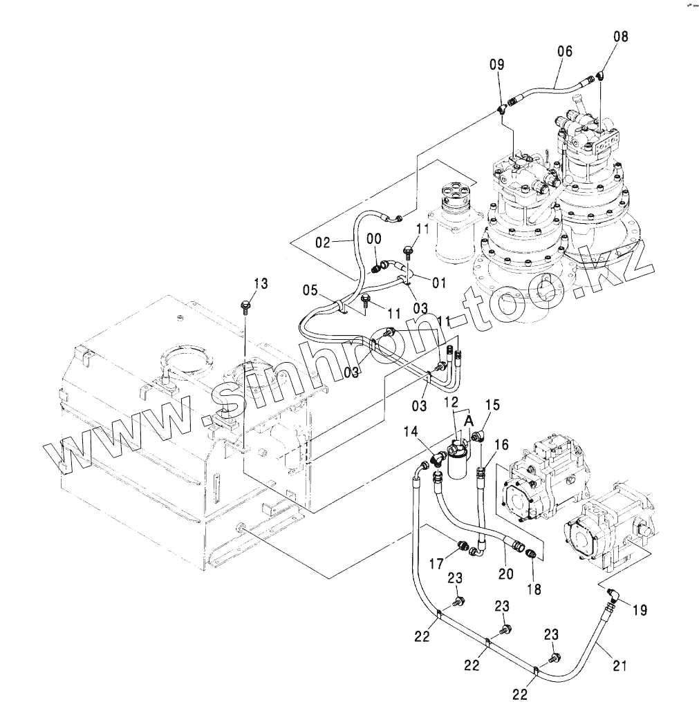 Каталог запасных частей к технике: Hitachi ZX-600. DRAIN PIPING
